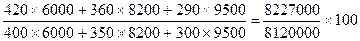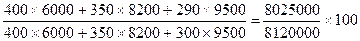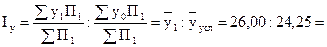 где Σу0П1 = 26 × 500 + 22 × 200 + 20 × 100 = 19400 ц.