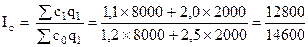 | Всего | 0,833 = Σс0q0/Σр0q0 = ![]() | 0,771 = Σсплqпл/Σрплqпл = ![]() | 0,747 = Σс1q1/Σр1q1 = ![]() | 0,772 = Σсплq1/Σрплq1 = ![]() | 0,776 = Σс1q1/Σрплq1 = ![]() |