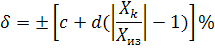 Например, погрешность, график которой представлен на рис. 1.35, можно считать аддитивной с границами, заданными пунктирной линией. В этом случае класс точности определяется приведенным значением предельной погрешности: