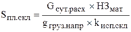 Склады материально-технического снабжения, подчиняясь соответствующему отделу этой службы, входят в общую систему заводского складского хозяйства. Сущность складского обслуживания сводится к приемке, хранению, учету, подготовке к отпуску и передаче материалов цехам-потребителям. Площадь складского помещения Sпл.скл определяется исходя из массы хранимого материала, грузонапряженности пола и коэффициента заполнения склада: