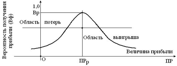 1. Наиболее вероятно получение прибыли, равное расчетной величине прибыли ПРР. Вероятность (Вр) получения такой прибыли максимальна, соответственно значение ПРР можно считать математическим ожиданием прибыли. Вероятность получения прибыли больше или меньше ПРР падает по мере роста величины прибыли.