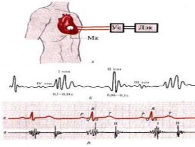 Фонокардиограф является аппаратом, регистрирующим звуковые процессы сердца. Обычно одновременно с фонокардиограммой (ФКГ) регистрируется ЭКГ, позволяющая четко определить систолический и диастолический интервалы