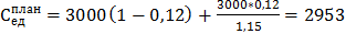 1. Определить как изменится себестоимость единицы продукции, если планируется увеличение объема производства на 15%; себестоимость продукции в базовом периоде 3000 руб./ед„ доля условно-постоянных расходов в себестоимости продукции 12%. Ответ: