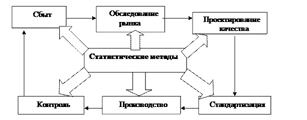Контроль качества, базируясь на статистических методах и развиваясь циклически, проходит через определенные этапы (рис. 1.1). Этот цикл называется циклом Деминга.