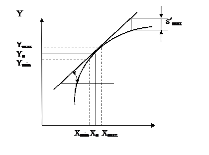 Графическая интерпретация этого случая показана, на рис. 1.9. Максимальная ошибка линеаризации