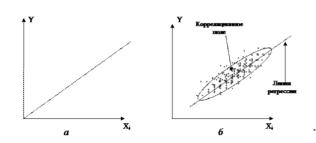 2. Оба признака X и Y не строго связаны между собой, и связь эта не функциональная, а статистическая. В этом случае каждому фиксированному значению x соответствует ряд изменяющихся вместе с изменением X значений Y и, наоборот, каждому фиксированному значению у соответствует ряд значений X, которые тоже изменяются с изменением Y.