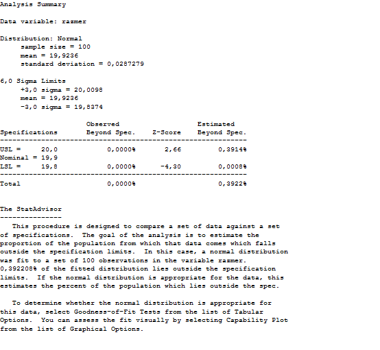 Пример 3.1. На автомате по настройке была изготовлена партия роликов D=20-0,2, в количестве 100 штук. Размеры деталей представлены в таблице, а результаты расчета в компьютерной распечатке.