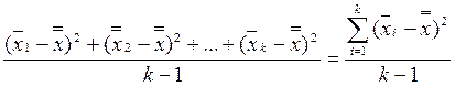 k-1 значений, но послеих выбора значение будет определяться средним значением оставшейся выборки, Смысл термина «дисперси я между выборками» станет понятен, если вспомнить смысл термина «дисперсия среднего значения». Предположим, что сделано k выборок объемом n и значения