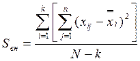 получается делением изменчивости внутри выборок на N-k. Так как для каждой из выборок одна степень свободы оказывается потерянной, а общее число выборок равно k, то v=N-k.