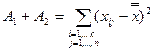 Таким образом, сумма квадратов отклонений A1+A2 и общее число степеней свободы N— 1 делятся на две составляющие. Одна составляющая основана на дисперсии частных средних вокруг общего среднего х, а другая — на дисперсиях внутри выборок.
