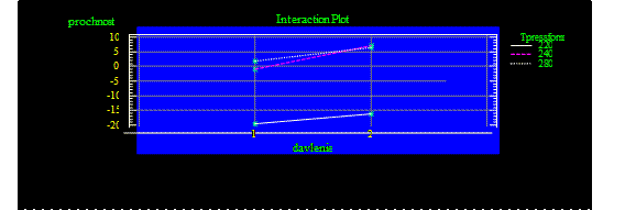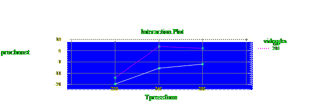 В частности, по назначению в конструкции пластмассовая деталь испытывает силовую нагрузку и должна сохранить работоспособность в течение всего срока службы. Это требует соблюдения строгой технологической дисциплины при изготовлении детали, режим которого должен быть близким к оптимальному. Задача технолога – выбрать этот режим из числа комбинаций уровней факторов, которые были использованы в эксперименте. Выходной параметр – минимальная сила разрушения детали в ньютонах в таблице приведена в кодированном виде.