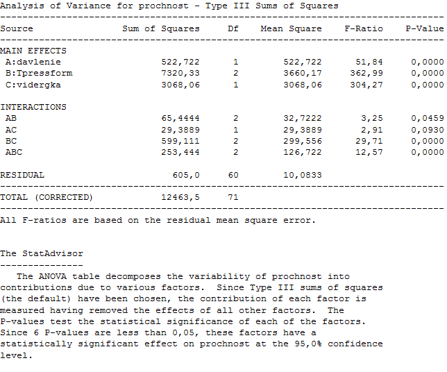 1. Наиболее важным, влияющим фактором является температура пресс – формы (Tpressform), затем время выдержки.