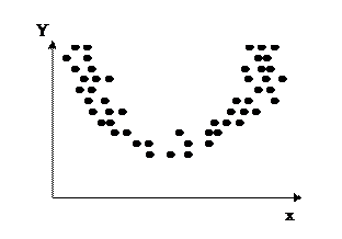 Известны случаи, когда коэффициент корреляции, подсчитываемый по выражению (3.6), оказывается близким к нулю, но между параметрами существует тесная связь (рис.3.2).