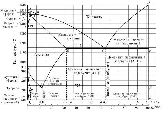 | Рисунок 4. Диаграмма состояния «железо-цементит» с обозначением линии, соответствующей заданной концентрации углерода |