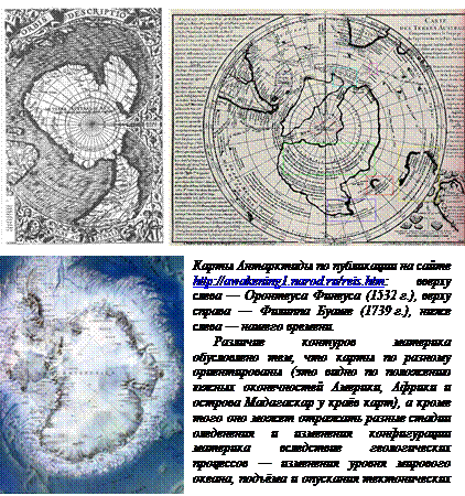 Ещё факт. В средневековье существовали карты, на которых были изображены Антарктида, берега Северной и Южной Америки. Из числа такого рода карт назовём некоторые известные в наши дни: карта турецкого адмирала Пири Рейса (1513 г.), карта Оронтеуса Финеуса (1532 г.), карта Меркатора (1569 г.), карта Филиппа Буаше (1739 г.)[38]. Причём на картах Пири Рейса и Меркатора многие районы Антарктиды изображены без ледяного панциря, в каком виде Антарктида никогда не была на памяти нынешнего человечества согласно официальной истории его цивилизации.