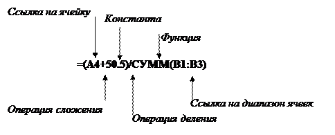 Ввод формулы выполняется в специальной строке формул и начинается со знака равно (=), после которого в одну строку вводится последовательность символов, соответствующая вычисляемому выражению. Математические формулы могут быть «многоуровневыми», а в Excel формулу нужно располагать в одной строке, поэтому приходится вводить скобки, которых нет в исходной формуле.