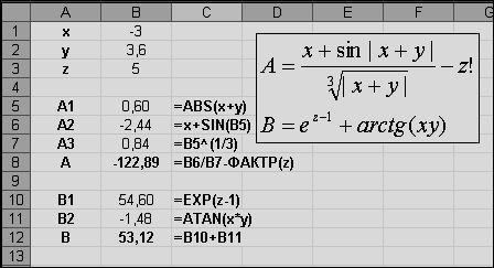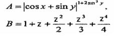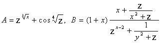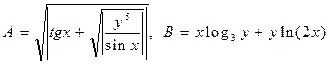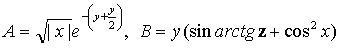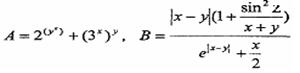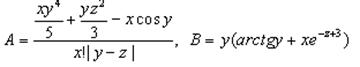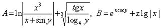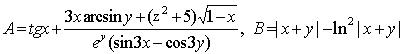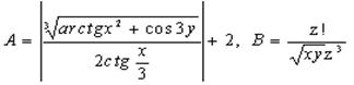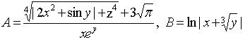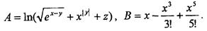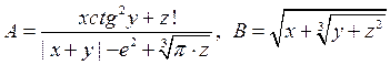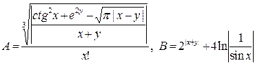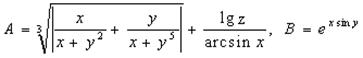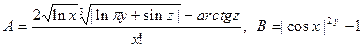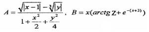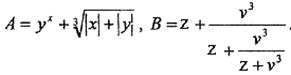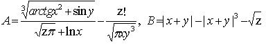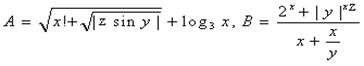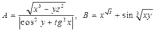 Задание. Вычислить выражения А и В при некоторых значениях входящих в них переменных x, y, z. Значения переменных выбрать самостоятельно, учитывая область допустимых значений А и В.