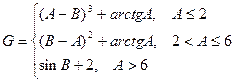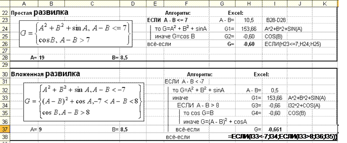 6) проверить правильность алгоритма и записанных формул в Excel, изменяя исходные данные (x,y,u) так, чтобы вычисление G выполнялось по разнымветвям развилки.