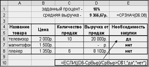 2) вычислить среднюю выручку: =СРЗНАЧ(D6:D8);