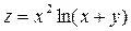 Задание. Cоставить таблицу значений функции двух переменных z = f(x,y),