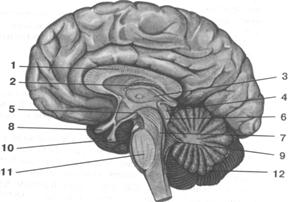 Рис. 7. Строение головного мозга (вертикальный разрез):