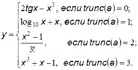 2. Дано положительное число a не больше 3. В зависимости от целой части этого числа вычислить: