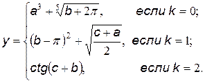 29. В зависимости от значения остатка от деления числа k (ввести с клавиатуры) на 3 вычислить: