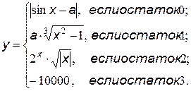 20. Ввести вещественные числа x, a и целое число k. В зависимости от значения остатка от деления числа k на 4, составить программу для вычисления