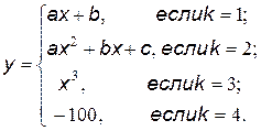 Используя оператор варианта case, составьте программу с вводом исходных данных, номера варианта и вывода результата. Эта задача соответствует задаче 2 в примере.