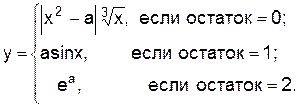 14. В зависимости от значения остатка от деления целого числа a на 3, вычислить