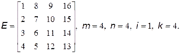 3. В массиве Е(m,n) поменять местами элементы i-й и k-й строк: