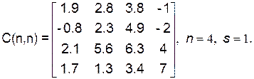 13. В массиве V(n,n) элементы строки, содержащей наибольший элемент, заменить на s: