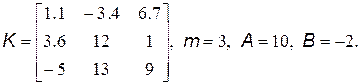 28. Преобразовать массив К(m,m), заменив все элементы, большие А, максимальным элементом массива К, а элементы, меньшие В, – минимальным его элементом: