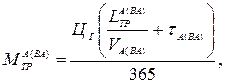 Удельную стоимость грузовой массы за время нахождения груза на автотранспорте (А, ВА) определяют: