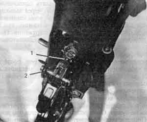 - повернуть замыкатель 1 по часовой стрелке; ~ сдвинуть вперед верхнее упорное кольцо 2