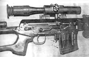 Самозарядная снайперская винтовка Драгунова (СВД) - современное оружие снайперского промысла, предназначенное для точного поражения отдаленных, малоразмерных, замаскированных и трудноразличимых целей (фото 39). Самозарядность и достаточная емкость магазина (10 патронов) обеспечивают повышенную скорострельность оружия и меткость поражения множественных целей, не давая им возможности укрыться.