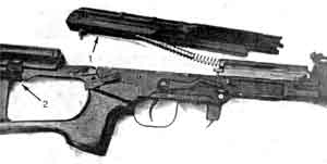 - отделить вверх крышку ствольной коробки с возвратным механизмом 1,