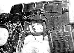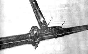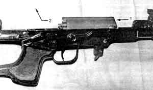 Фото 41. Центральная часть винтовки СВД слева. Для отсоединения прицела повернуть на себя ручку зажимного винта 1
