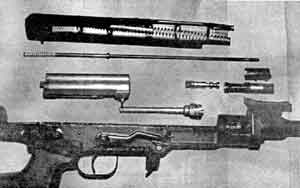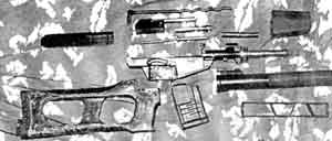 Конструкция "Винтореза" предельно проста. Особенность ее - ударно-спусковой механизм, состоящий из ударника и двух шептал - одно для автоматического, другое для одиночного огня. Принцип автоматики и запирания ствола такой же, как у автомата Калашникова. Разборка представлена на фото 65-78. Сборка производится в обратном порядке. Особенности устройства "Винтореза" и патронов к нему представлены на фото 79-83. Патрон СП-6 в разобранном виде представлен на фото 84, 85.