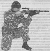 Фото 117. Опора на правое колено, развернутое примерно на 60-80° от плоскости стрельбы