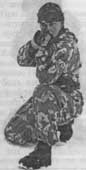 В положении с колена стрелок должен уравновесить себя с оружием: масса системы стрелок - оружие, которая тянет вперед, должна уравновеситься с массой, которая тянет назад. Стрелка, который горбится, потянет вперед; соответственно, отрывы пойдут вниз. У стрелка, который сидит чрезмерно прямо и откинувшись назад, отрывы пойдут вверх. Следовательно, в позе стрелка, работающего на колене, должно быть полнейшее равновесие.