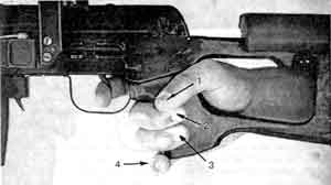 Фото 135. Боковой хват пистолетной рукоятки. Большой палец можно положить на рычаг фиксатора крышки ствольной коробки - 1