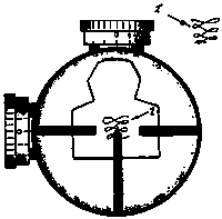 Схема 35. Прицеливание по центру. Если при стрельбе с оптическим прицелом, пристрелянным по центру, район колебаний 1 прицельного пенька не выходит за габариты мишени, точка попадания тоже не выйдет за эти габариты