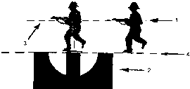 В нашем случае при стрельбе по ростовой перебегающей фигуре на дистанции 350 метров (это реальная дистанция в боевых условиях) целиться можно с открытым прицелом П (постоянный) или 3 1/2 (оптический), целясь впереди пояса фигуры, или же с прицелом "6", визуально привязывая движение прицеливания по горизонту и целясь впереди каблуков цели. При этом вы попадаете в пояс цели (схема 38). Разумеется, нужно брать необходимое упреждение.