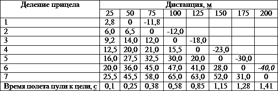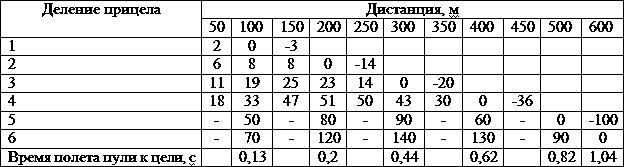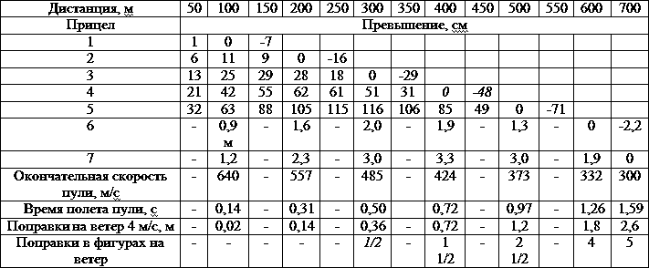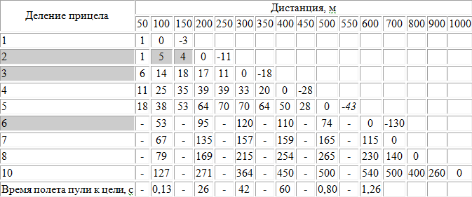 Данные с минусом после 0 означают понижение траектории после дальности установленного прицела.