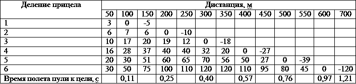 ПРИМЕЧАНИЕ. Знак "минус" означает понижение траектории относительно линии прицеливания.