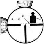 Автор этого пособия навсегда запомнил практический прием стрельбы по бегущим целям, когда-то показанный ему старым фронтовым снайпером. При стрельбе по "бегунку", который двигался со стандартной для бегущего пехотинца скоростью 3 м/с на стандартной дистанции боевого стрельбища 300 метров, старый инструктор ставил прицел "5" и привязывался к нижнему переднему краю цели верхним углом выравнивающей нити (2 на схеме 82). Пуля попадала на уровне пояса мишени, на высоте 70 см. Промахов не было. Позднее автор просчитал баллистику по вышеприведенной методике - все совпало! Привязываться к центру бегущей фигуры непросто, но, поскольку она наклонена вперед, это и не нужно. Старый инструктор привязывался точкой прицеливания по горизонту, на котором двигалась цель, и ему было легче все это делать. Разумеется, он стрелял с поводкой, ведя винтовку непрерывно по линии движения цели, и производил выстрел, не останавливая поводки оружия. Как рассказывал старый фронтовик, этот прием отработан десятилетиями, и в боевой обстановке подвижного боя лучше уже никак не получится.