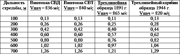 Стрельба из винтовки СВД по движущимся целям (из наставления по винтовке СВД) (полная таблица)