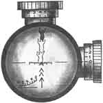 При стрельбе упреждение берется по направлению снижения парашютиста в его видимых размерах (вертикальных фигурах) по высоте (1,5 м).