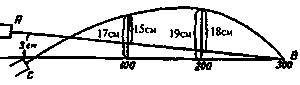 Схема 100. Превышения траектории над линиями прицеливании оптического (АВ) и открытого (СВ) прицелов